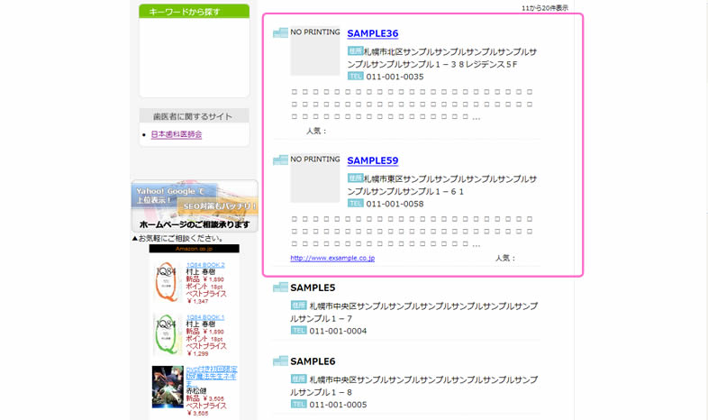 広告登録をした場合、検索にて上位表示され専用の宣伝ページを掲載できます。